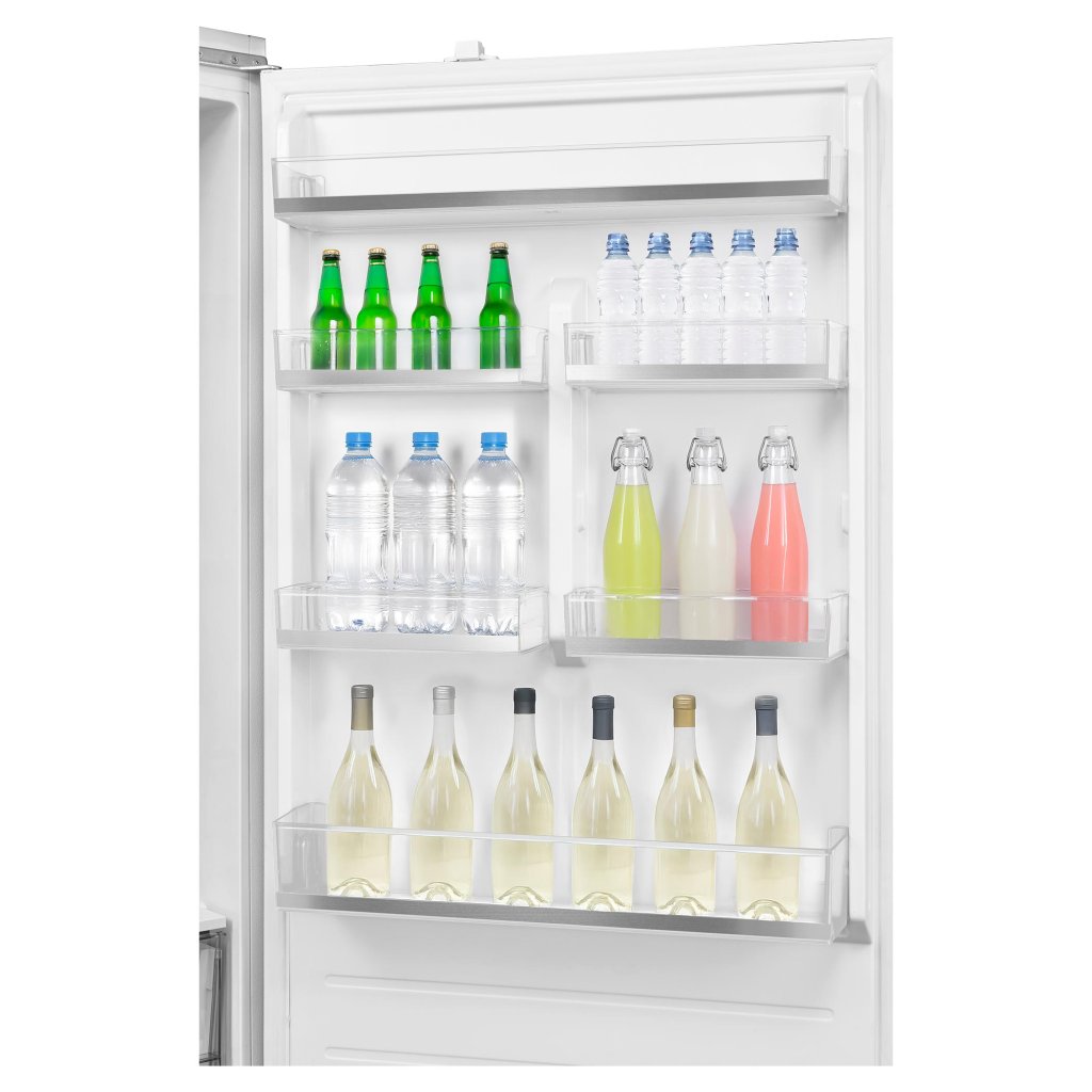Speciální poličky ve dveřích BottleFrame jsou navrženy pro stabilní uložení nápojů bez padání při každém otevření chladničky. Lahve drží a nezabírají místo uvnitř.