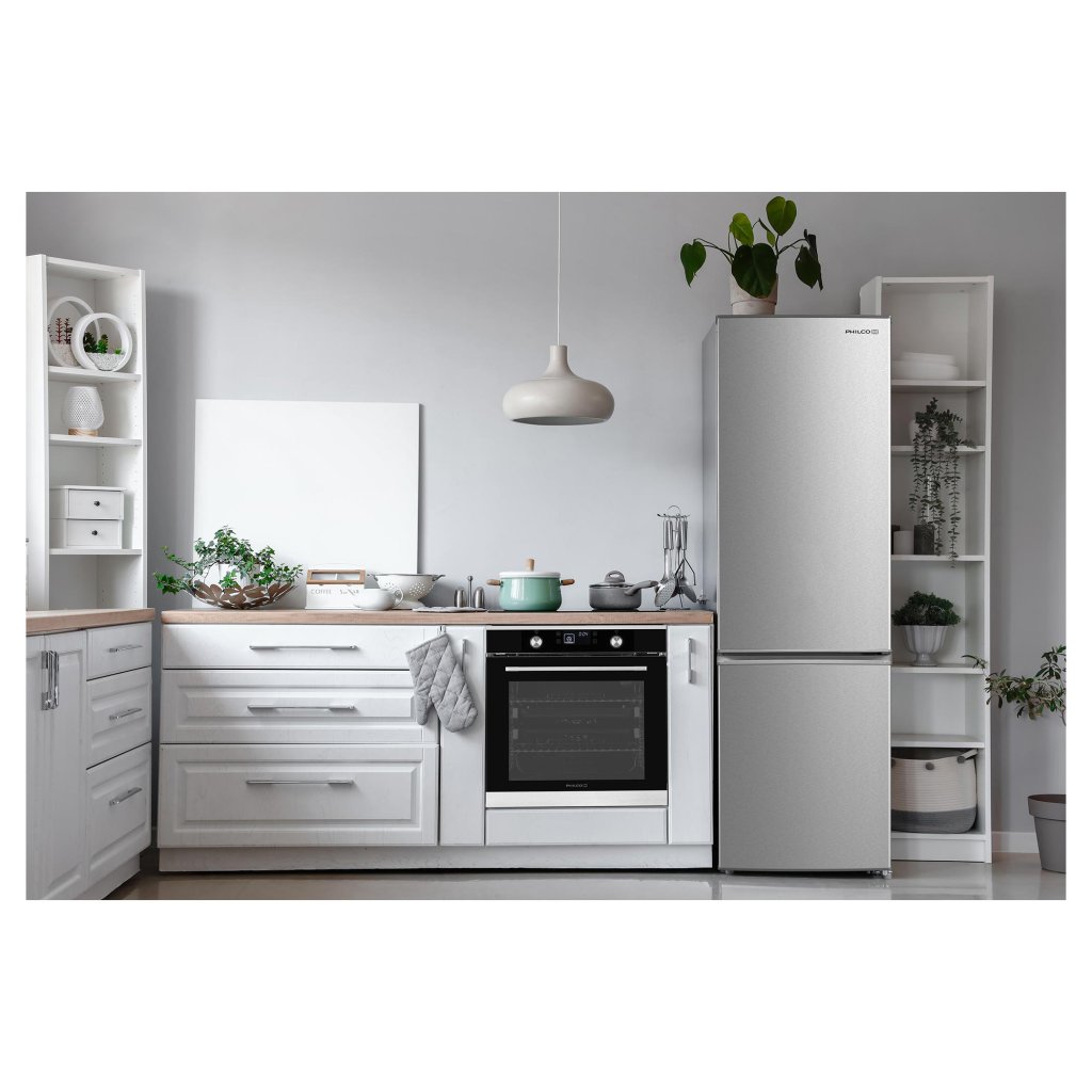 Kombinovaná chladnička Philco PCS 262 EX v elegantní nerezové barvě a energetické třídě E. Nízkonámrazový systém LowFrost zajistí nižší potřebu odmrazování a madlo s antibakteriální úpravou se postará o záchyt nežádoucích mikroorganismů vně chladničky. LED osvětlení, 4 skleněné police, 3 dveřní poličky a 2 šuplíky v mrazáku to je dostatek prostoru pro čerstvé potraviny a chlazené nápoje vždy po ruce.