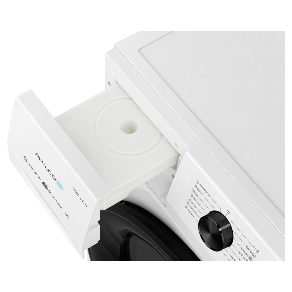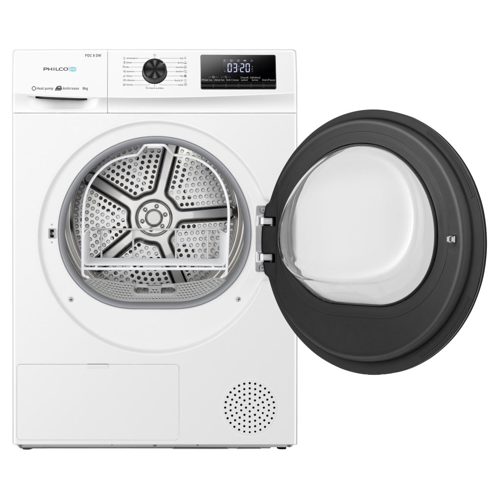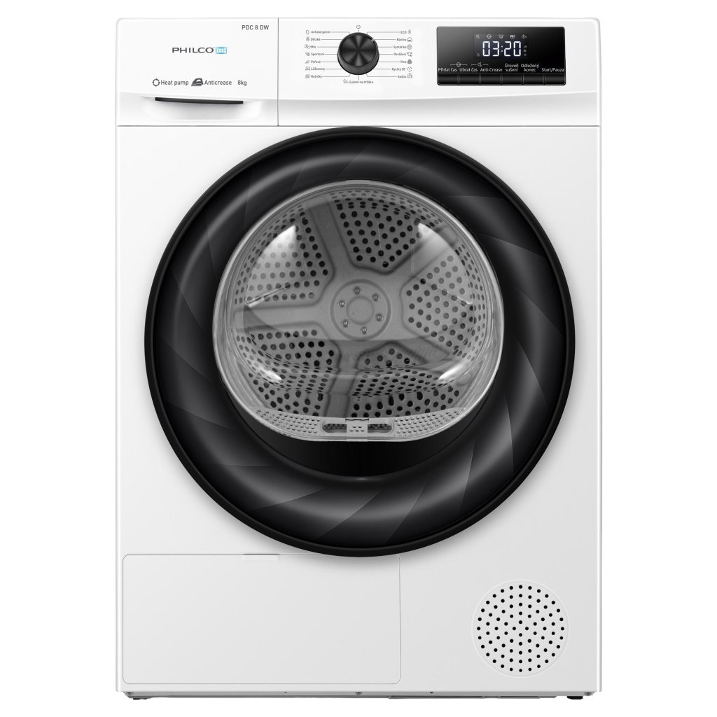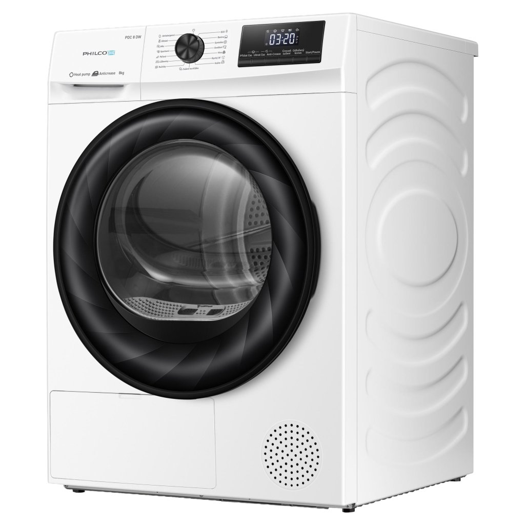 Sušička prádla Philco PDC 8 DW je díky kapacitě 8 kg ideální pro rodiny s větším množstvím prádla. Využívá technologii tepelného čerpadla, která šetří energii a náklady na elektřinu, a umí nastavit úroveň sušení tak, aby vám šetřila práci! Úsporná a praktická