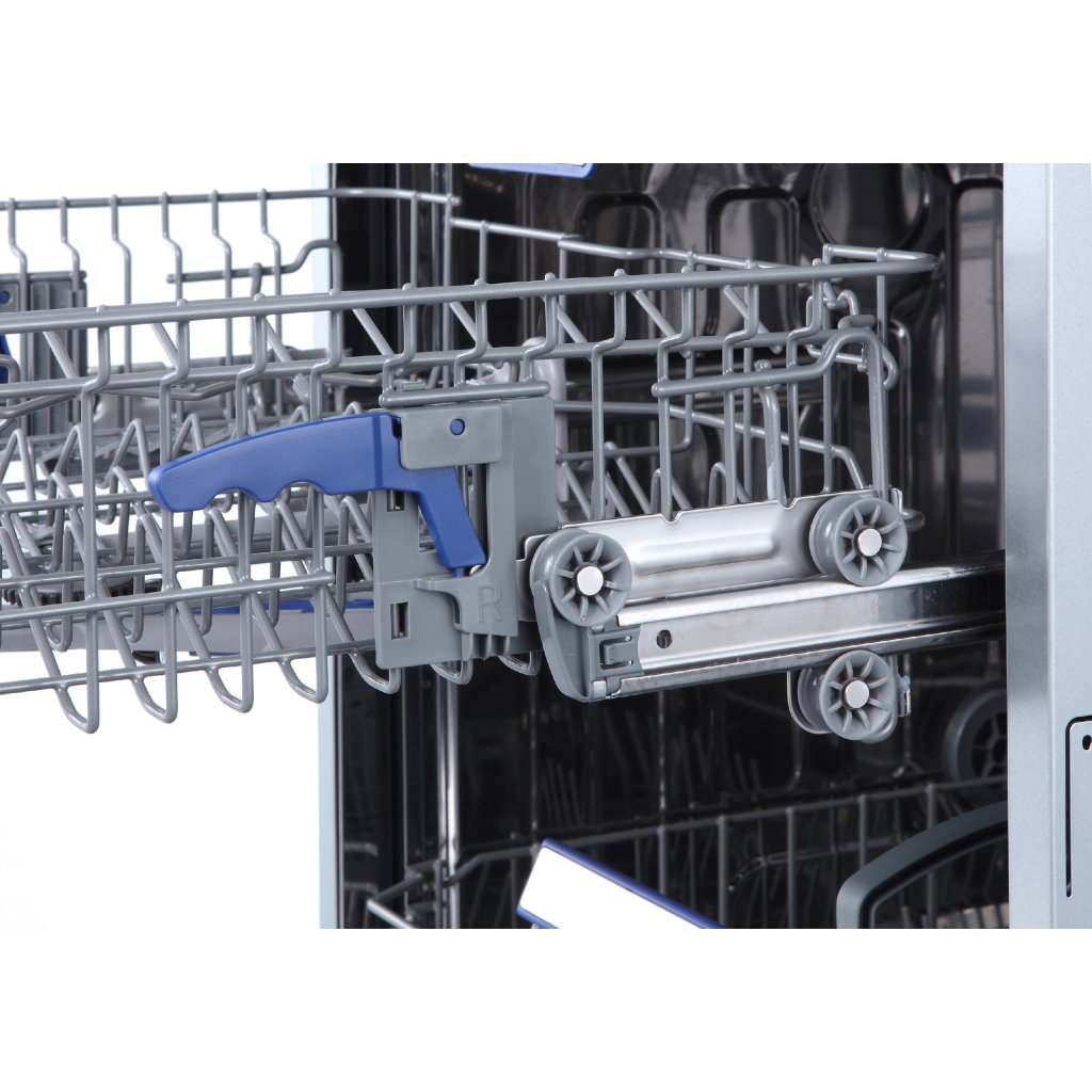 Nerezový interiér nabídne výsuvný koš na příbory, možnost nastavení výšky středního koše i při plném zatížení, antibakteriální filtr a především SpinProWash - speciální rameno s 360° sprchováním.