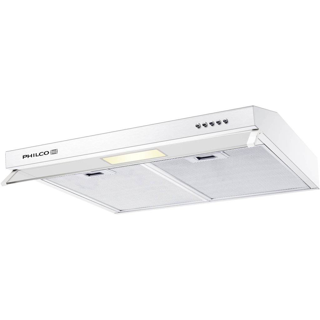 Podvěsný odsavač par Philco PEC 1905 W s tlačítkovým ovládáním. Díky ergonomickému bílému designu je vhodný do každé kuchyně. Pracovní plochu je možné osvětlit zabudovaným úsporným 2 W LED osvětlením.