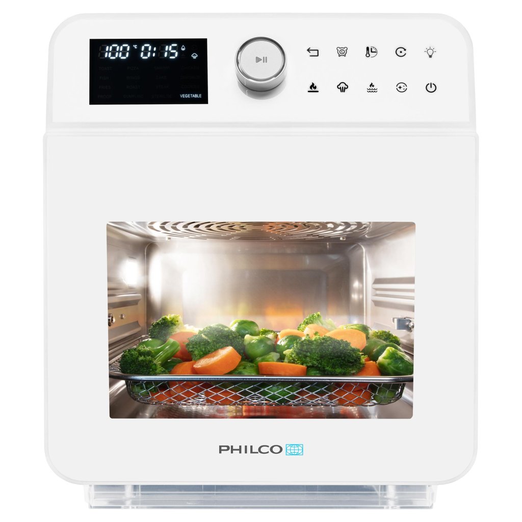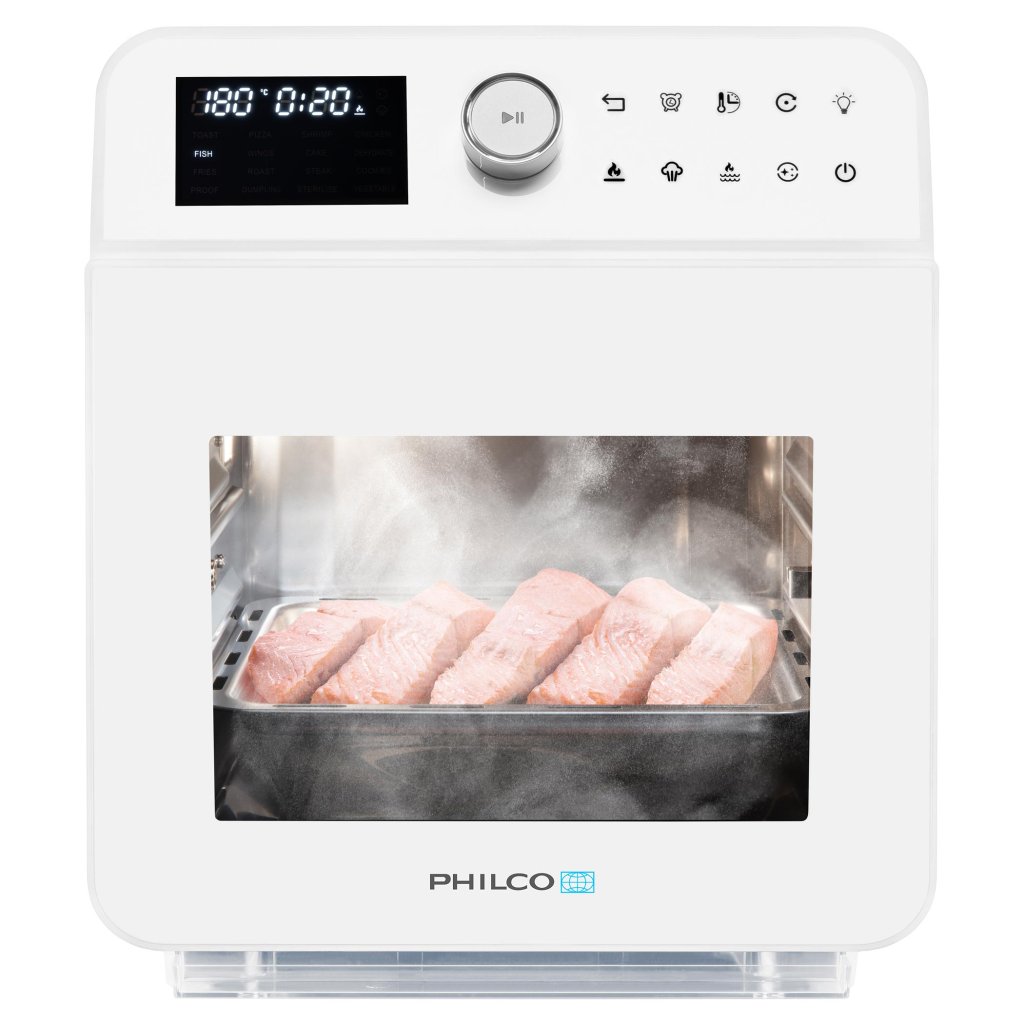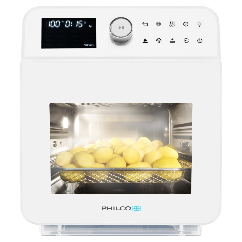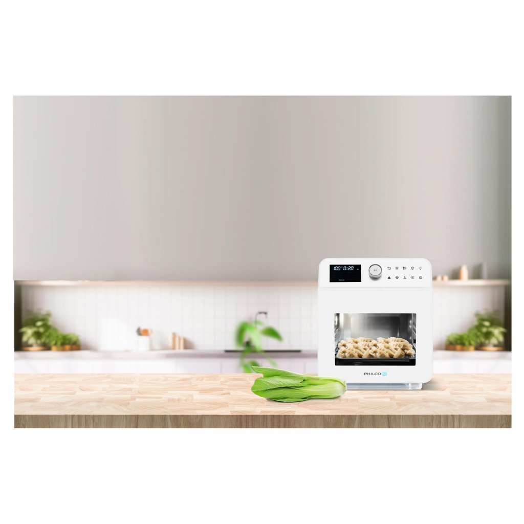 Horkovzdušná fritéza Philco PHAO 1115 W v bílé barvě s funkcí páry pro dokonalou přípravu mnoha různých receptů. Chytře kombinuje režimy vaření, abyste vždy dosáhli perfektního výsledku – na povrchu křupavé, uvnitř šťavnaté.
