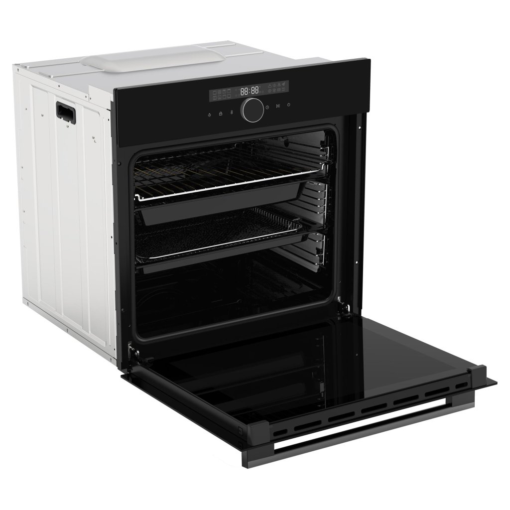 Dotykové ovládání v kombinaci s otočným knoflíkem a bíle podsvíceným displejem zajišťuje jednoduchou a intuitivní obsluhu. Bezpečnostní prvky jako dětská pojistka, trojité sklo dveří, teleskopický výsuv a tiché dovírání dvířek SoftClose přispívají k pohodlnému a bezpečnému provozu.