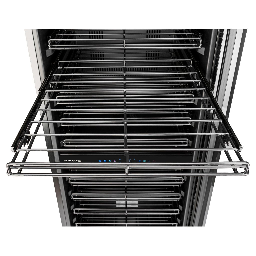 Dvouzónová kompresorová vinotéka Philco PW 131 GDC je skvělou volbou pro milovníky vína, kteří chtějí mít po ruce bohatou sbírku. Vinotéka pojme až 131 lahví, nabídne také dvě nezávislé zóny chlazení a police LabelView, se kterými máte dokonalý přehled.
