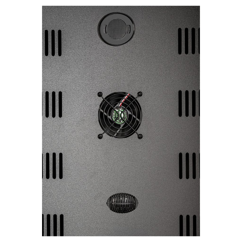 Pomaloběžný ventilátor zabezpečuje rovnoměrné rozložení stálé teplotyuvnitř vinotéky.