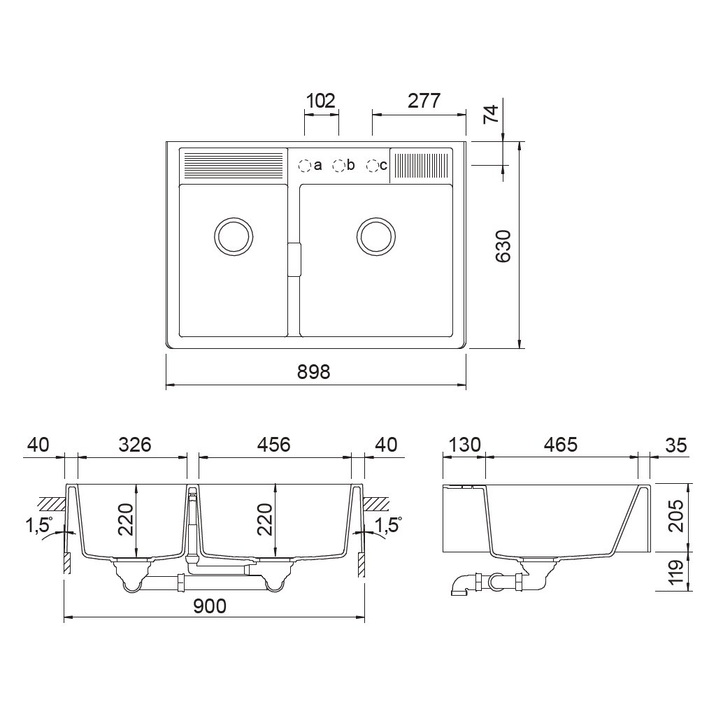 Typ povrchu / materiál: CRISTADUR®;Typ uložení: modulární;Barevné provedení: Day;Rozměr dřezu: 898 x 630 mm;Šířka skříňky: 90 cm;Vnitřní rozměr dřezu: 456 x 465 x 220 mm ● Vnitřní rozměr menšího dřezu: 326 x 465 x 220 mm;Hloubka dřezu: 220 mm;Orientace dřezu: pevně daná;Zešikmená plocha na přední straně dřezové nádoby;Příslušenství v ceně: Diamantový vrták SB Light, Odtokové armatury s excentricky ovládaným sítkem/zátkou;15 let zárukaDoplňkové parametry