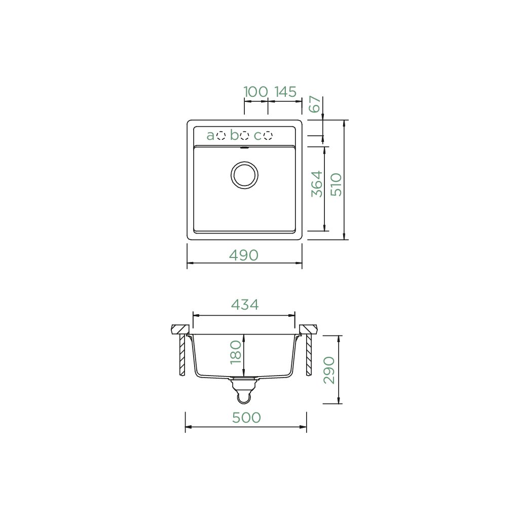 | Rozměry dřezu: | 490x510x180 mm |