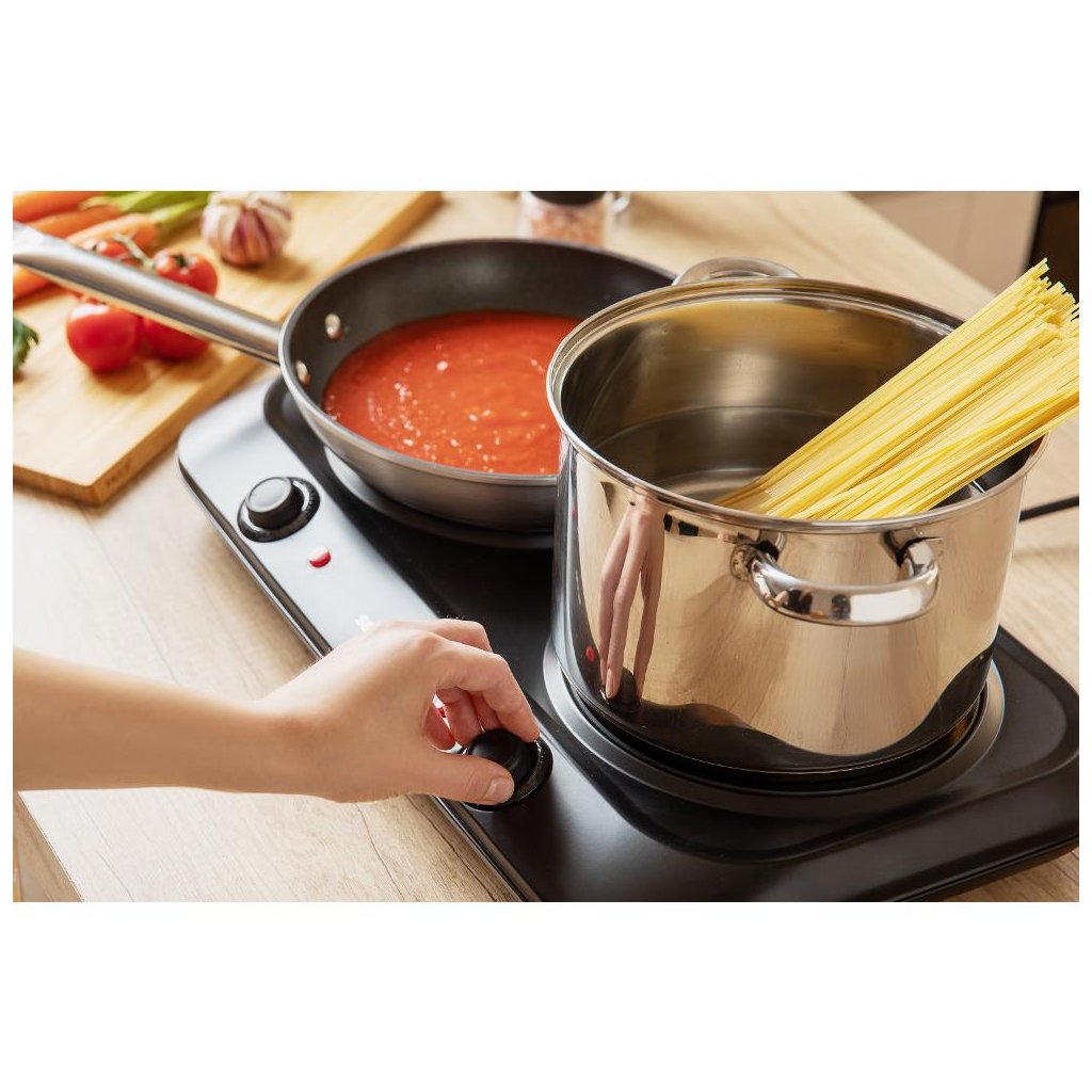 Moderní sklokeramický vařič nabízí dvě výkonné sálavé plotýnky s celkovým příkonem 2400 W a snadným ovládáním pomocí otočných termostatů.