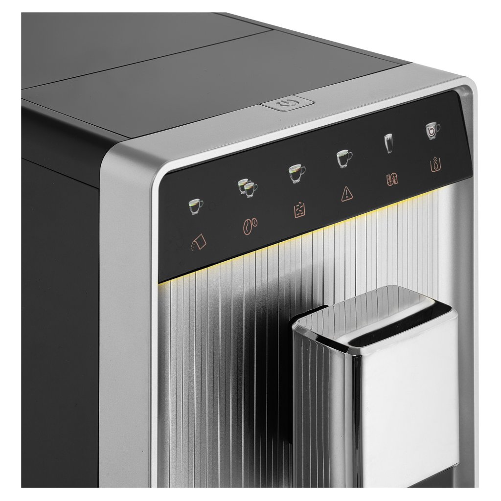 Štíhlé provedení (18 cm) šetří místo na lince, přesto nechybí patentovaná spařovací jednotka, systém předspaření pro zvýraznění chuti, výškově nastavitelný dávkovač a funkce horké vody.