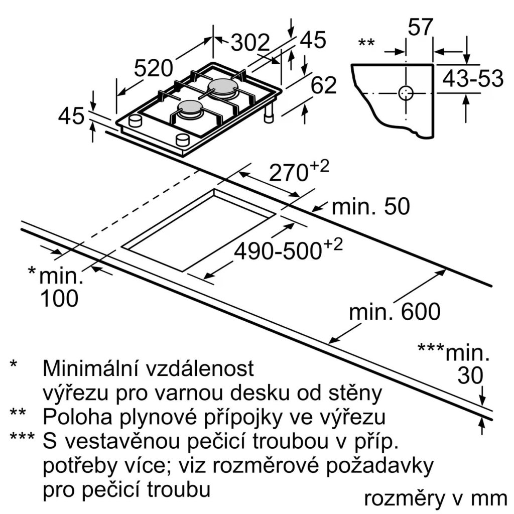 - rozměry pro vestavbu (V x Š x H) : 45 x 270 x 490 - 502 mm