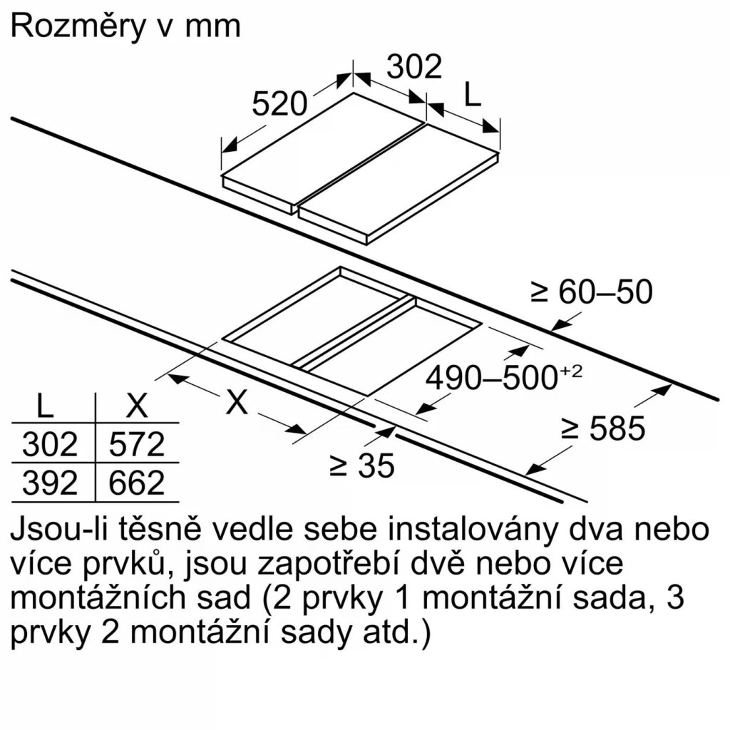 - min. tloušťka pracovní desky: 30 mm