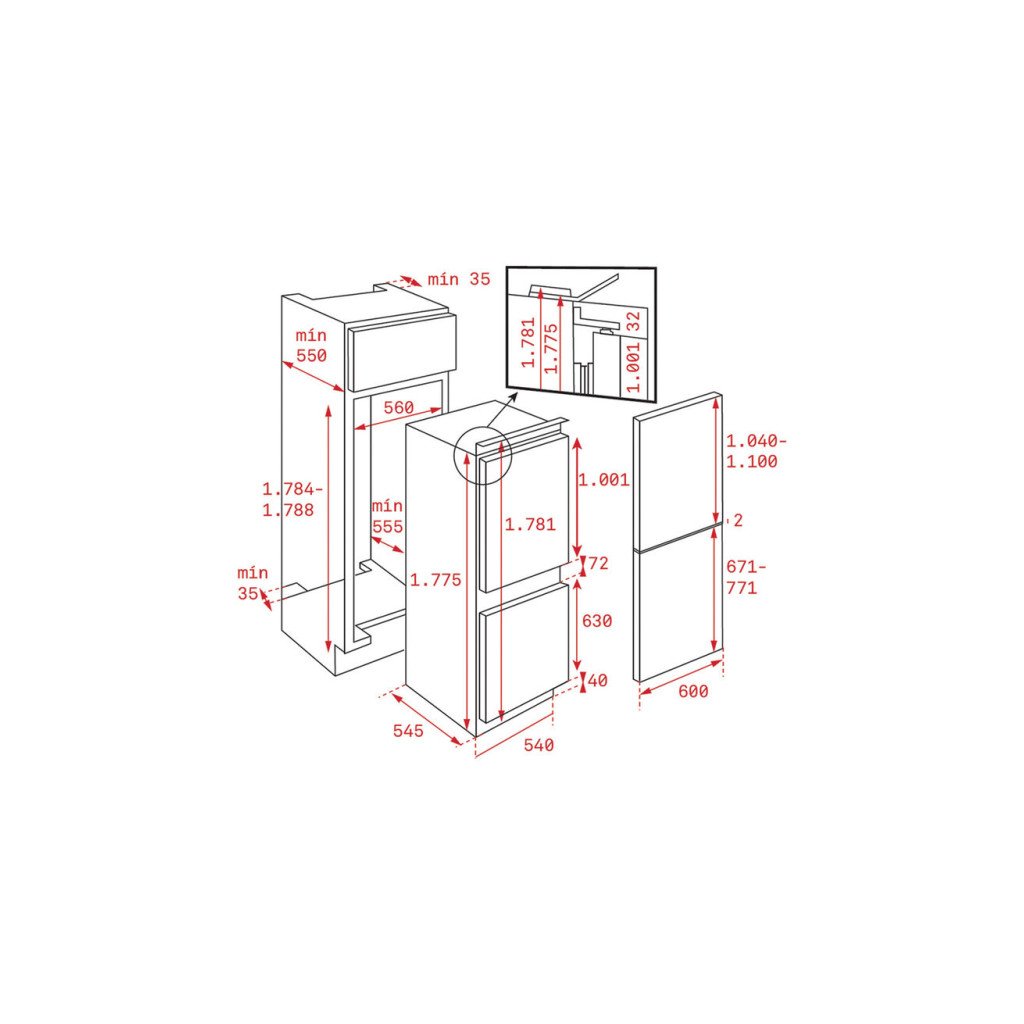 Vestavná kombinovaná lednice, Energetická třída: E, Rozměry (VxŠxH): 1780x540x540 mm, Celkový objem: 249 l, Max. hlučnost: 39 dB, Roční spotřeba energie: 217 kWh, Změna směru otevírání...