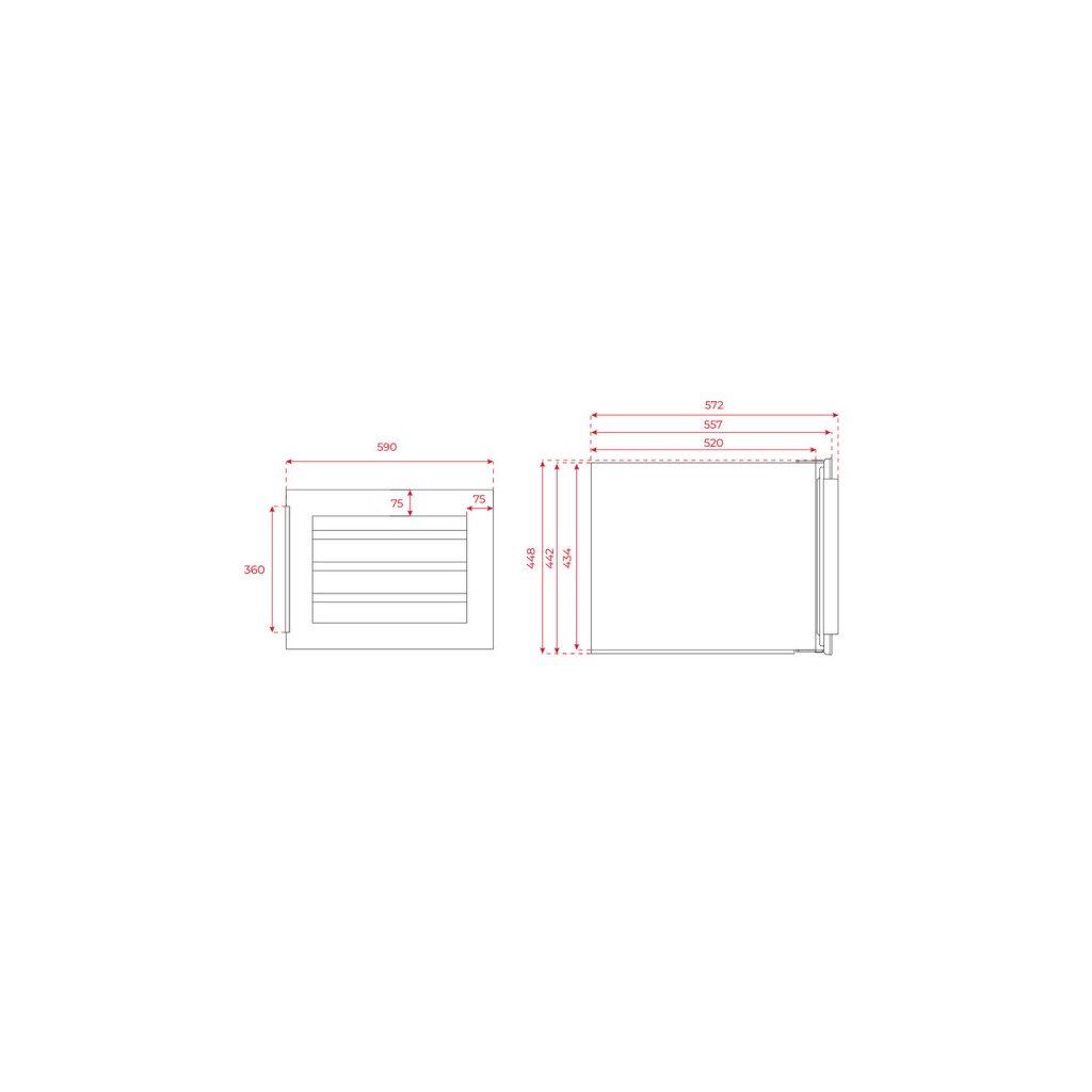 Vestavná vinotéka, Energetická třída F, Kapacita lahví 18, Vnitřní objem 49 l, Jednozónová, Max. hlučnost 39 dB, Rozměry (VxŠxH): 455x595x566 mm