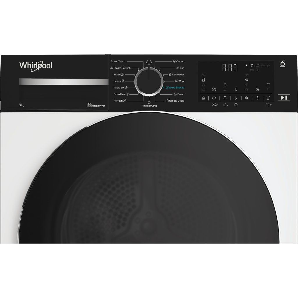 Přednosti této volně stojící sušičky Whirlpool: vynikající kapacita bubnu 9,0 kg, takže vám nikdy nebude chybět prostor. Exkluzivní technologie 6. SMYSL neustále monitoruje vlhkost v bubnu, chrání vaše oblečení a poskytuje ideální výsledky sušení. Připojení umožňuje spotřebiči přijímat informace o průběhu praní a podle toho upravovat nastavení pro dosažení ideálních výsledků. Provětrávání párou zajišťuje jemné a hygienické sušení, které snižuje pomačkání a osvěžuje vaše prádlo. Technologie tepelného čerpadla účinně ohřívá vzduch ve spotřebiči, čímž výrazně snižuje spotřebu energie.