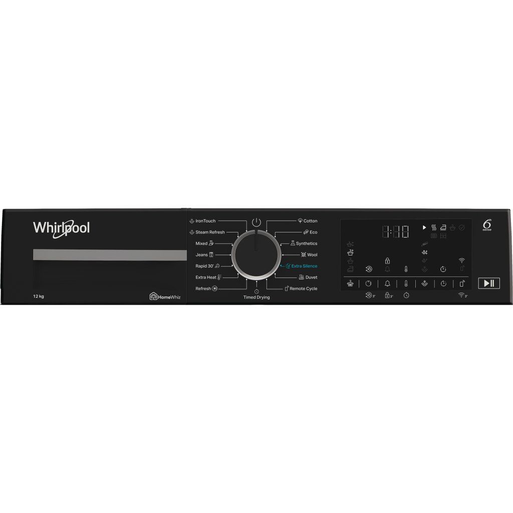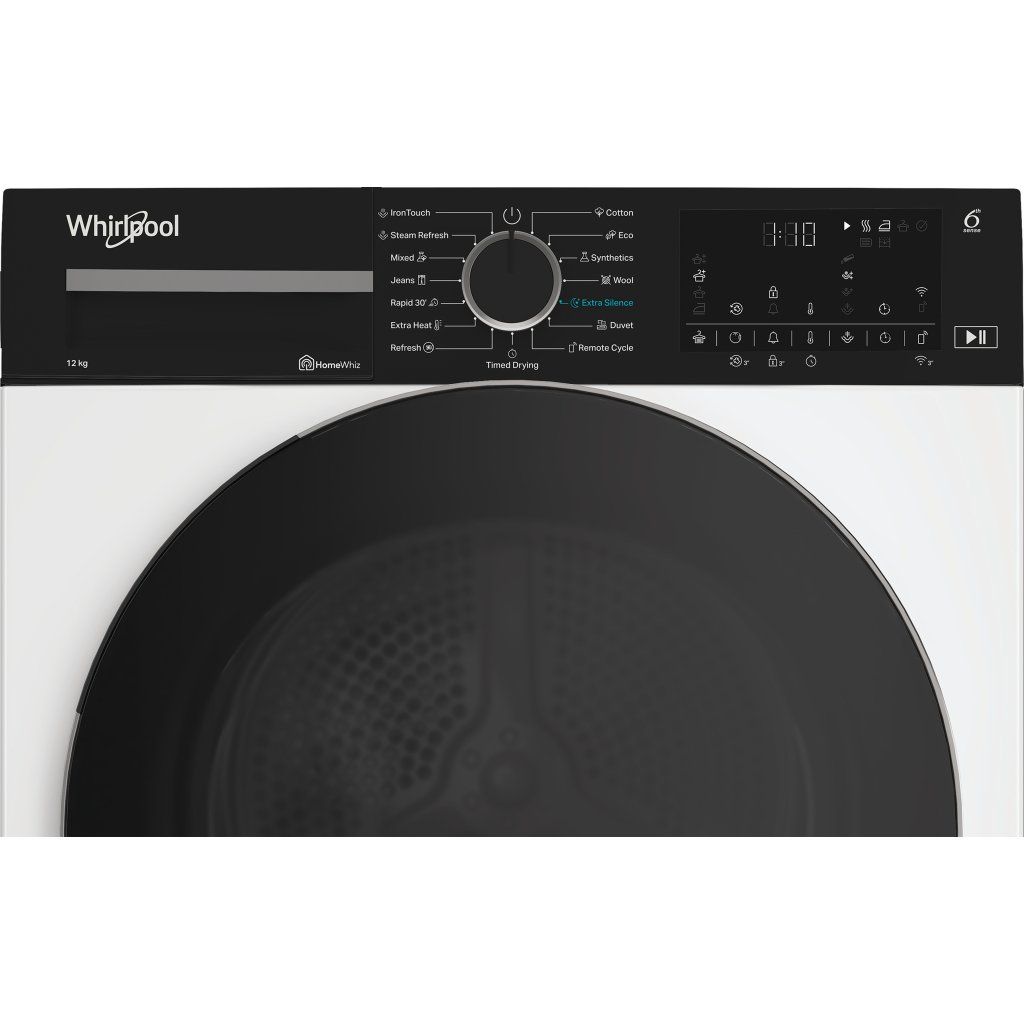 Přednosti této volně stojící sušičky Whirlpool: kapacita bubnu 12,0 kg. Exkluzivní technologie 6. SMYSL neustále monitoruje vlhkost v bubnu, chrání vaše oblečení a poskytuje ideální výsledky sušení. Připojení umožňuje spotřebiči přijímat informace o průběhu praní a podle toho upravovat nastavení pro dosažení ideálních výsledků. Provětrávání párou zajišťuje jemné a hygienické sušení, které snižuje pomačkání a osvěžuje vaše prádlo. Technologie tepelného čerpadla účinně ohřívá vzduch ve spotřebiči, čímž výrazně snižuje spotřebu energie.