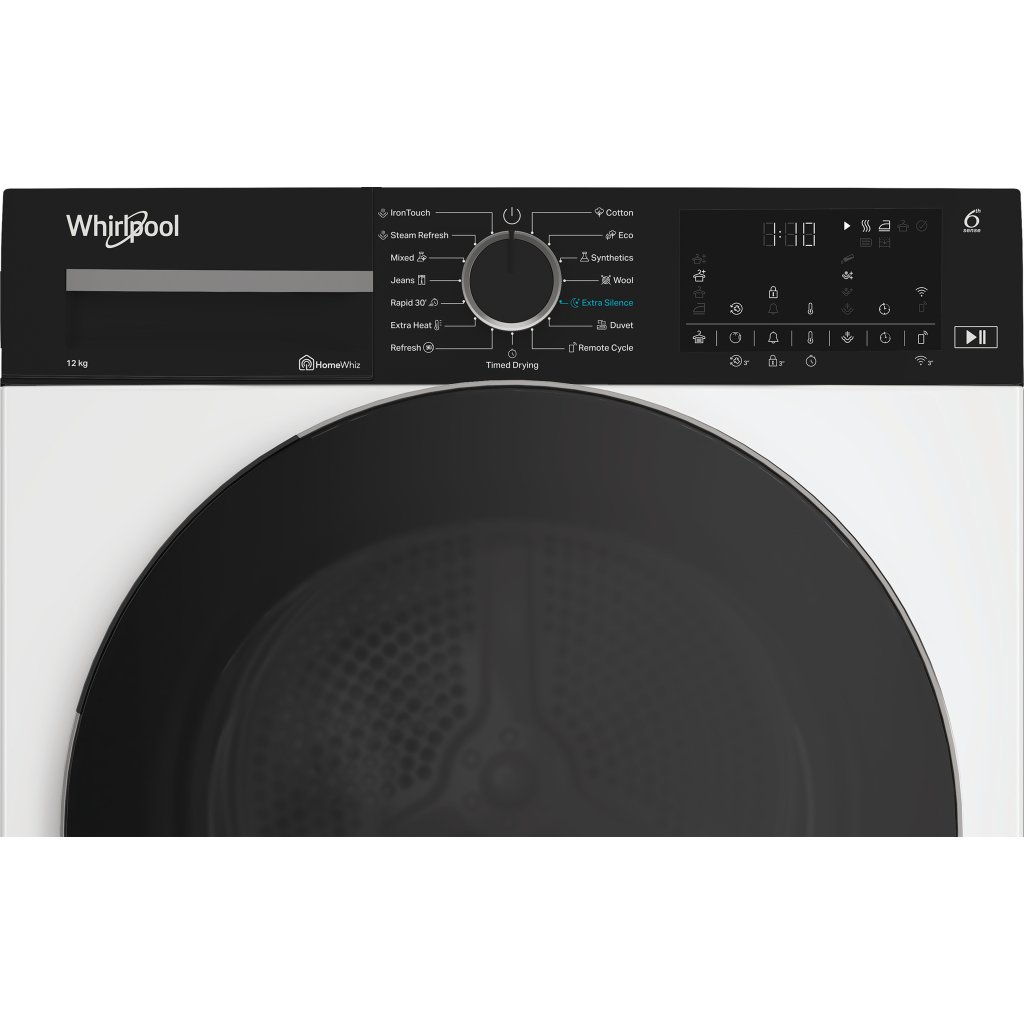 Přednosti této volně stojící sušičky Whirlpool: kapacita bubnu 12,0 kg. Exkluzivní technologie 6. SMYSL, která neustále monitoruje vlhkost v bubnu, chrání vaše oblečení a poskytuje ideální výsledky sušení. Připojení, které umožňuje spotřebiči přijímat informace o průběhu praní a podle toho upravovat nastavení pro dosažení ideálních výsledků. Provětrávání párou pro jemné a hygienické sušení, které snižuje pomačkání a osvěžuje vaše prádlo. Technologie tepelného čerpadla, která účinně ohřívá vzduch ve spotřebiči, čímž výrazně snižuje spotřebu energie.
