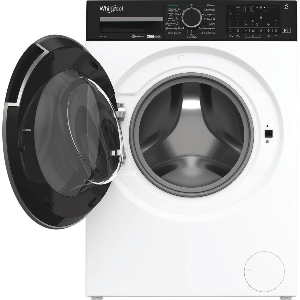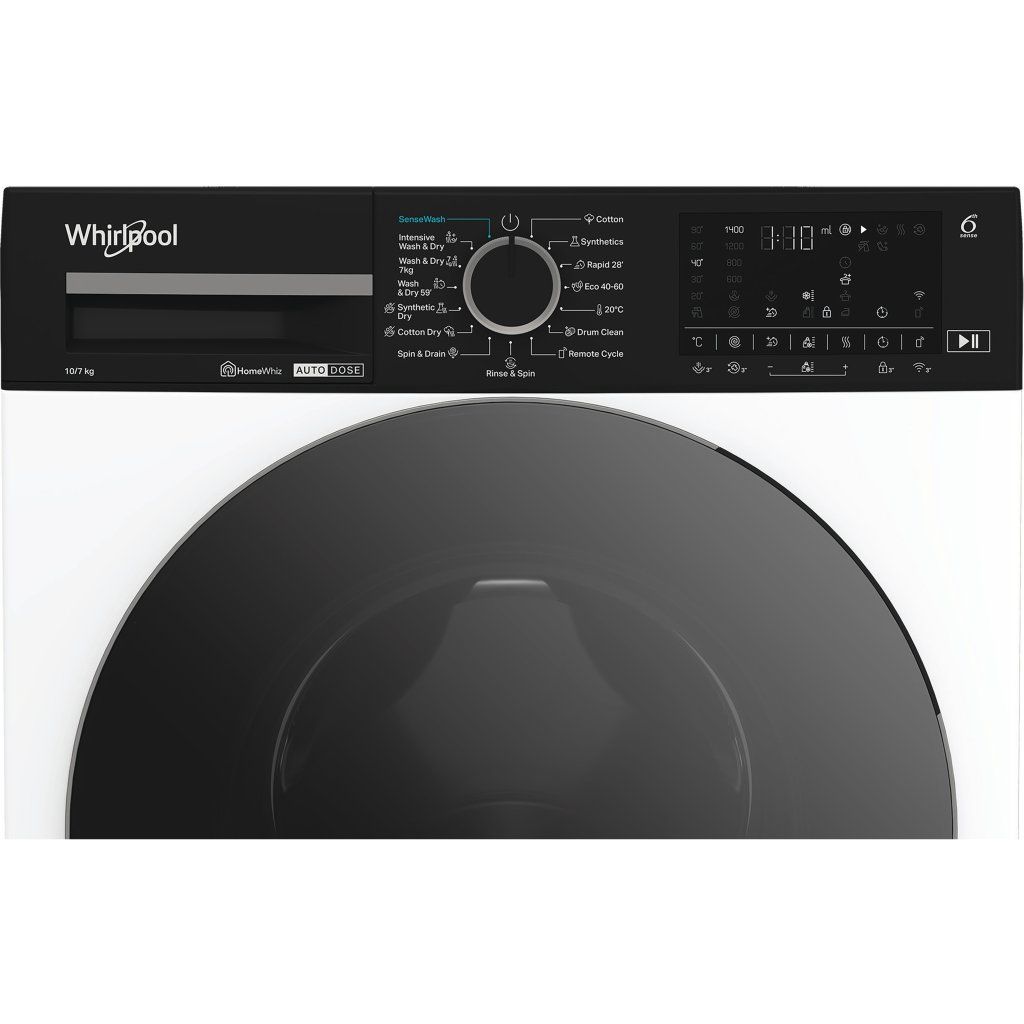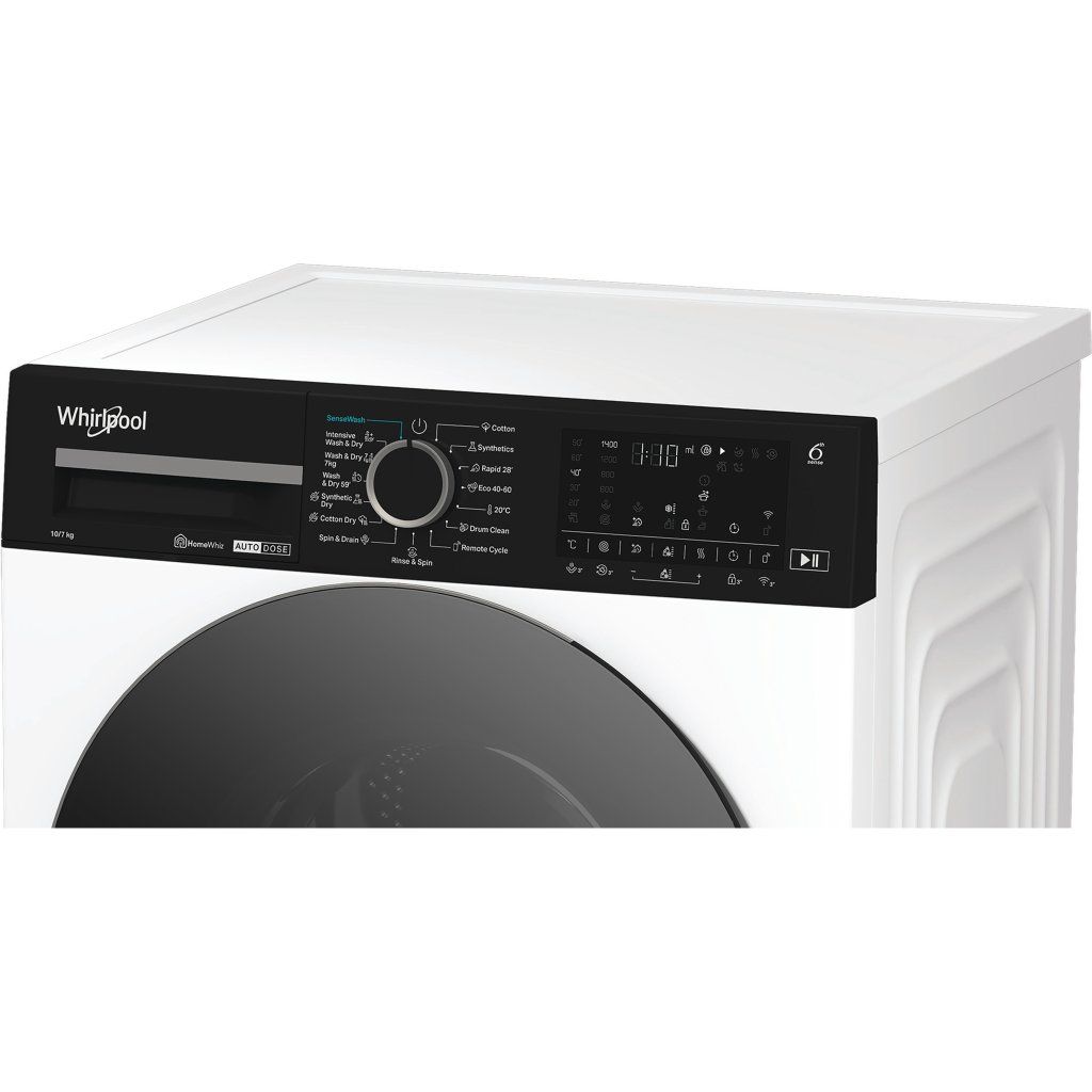 Přednosti této volně stojící pračky se sušičkou Whirlpool: bílá barva. Vynikající kapacita praní 10,0 kg. Vysoká kapacita sušení 7,0 kg. Exkluzivní technologie 6. SMYSL, která neustále monitoruje vlhkost uvnitř bubnu, chrání vaše oblečení a poskytuje ideální výsledky praní a sušení. Rychlé a efektivní odstreďování 1400 ot/min.Invertorový motor