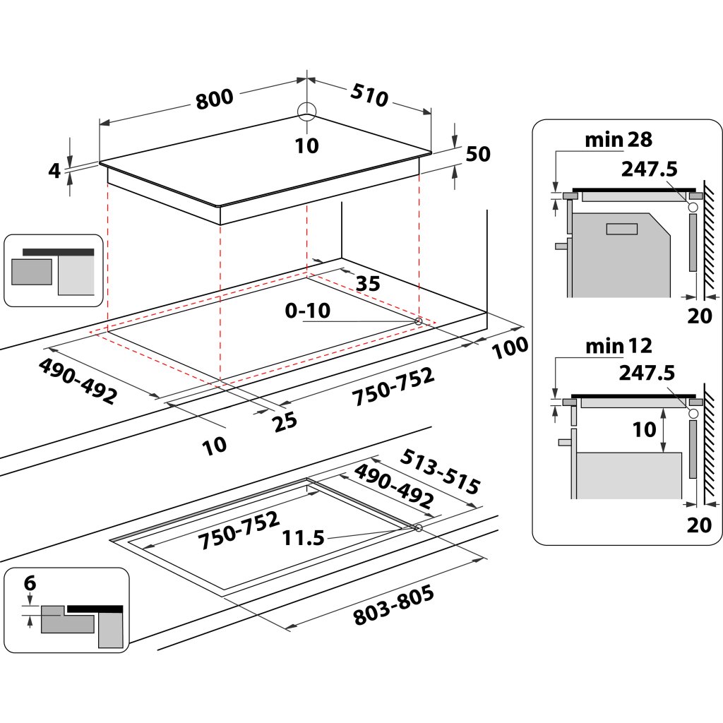 Prostor pro instalaci (VxŠxH): 50x750x490 mm